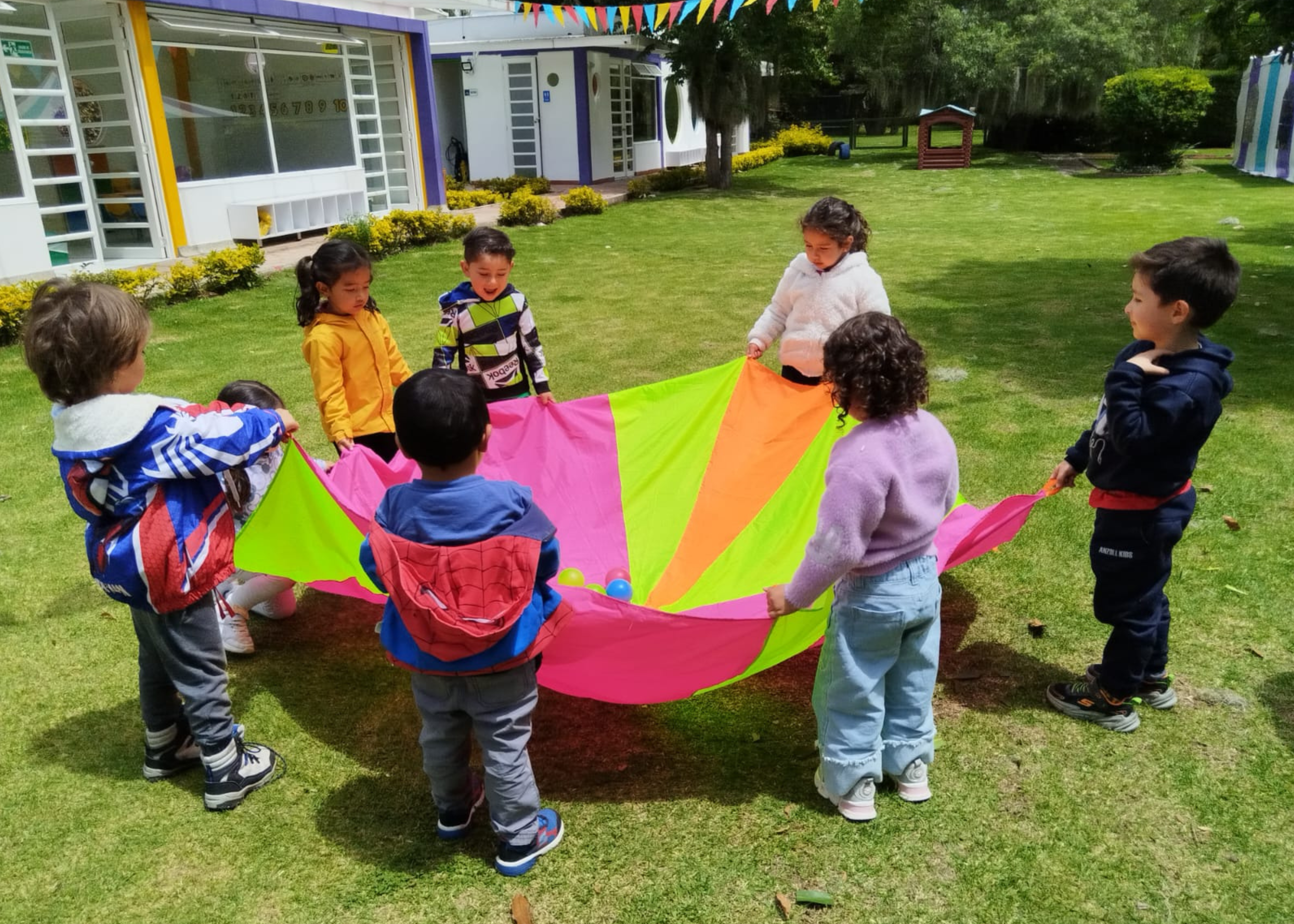 Nuestras instalaciones están acondicionadas para jugar y aprender de manera segura. Cada espacio está diseñado teniendo en cuenta un propósito pedagógico.